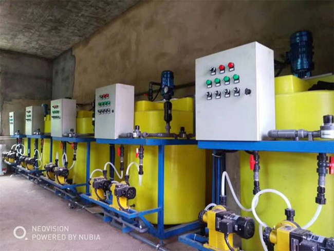 配置可靠的液位控制器及电磁阀实现自动溶药、加药过程。